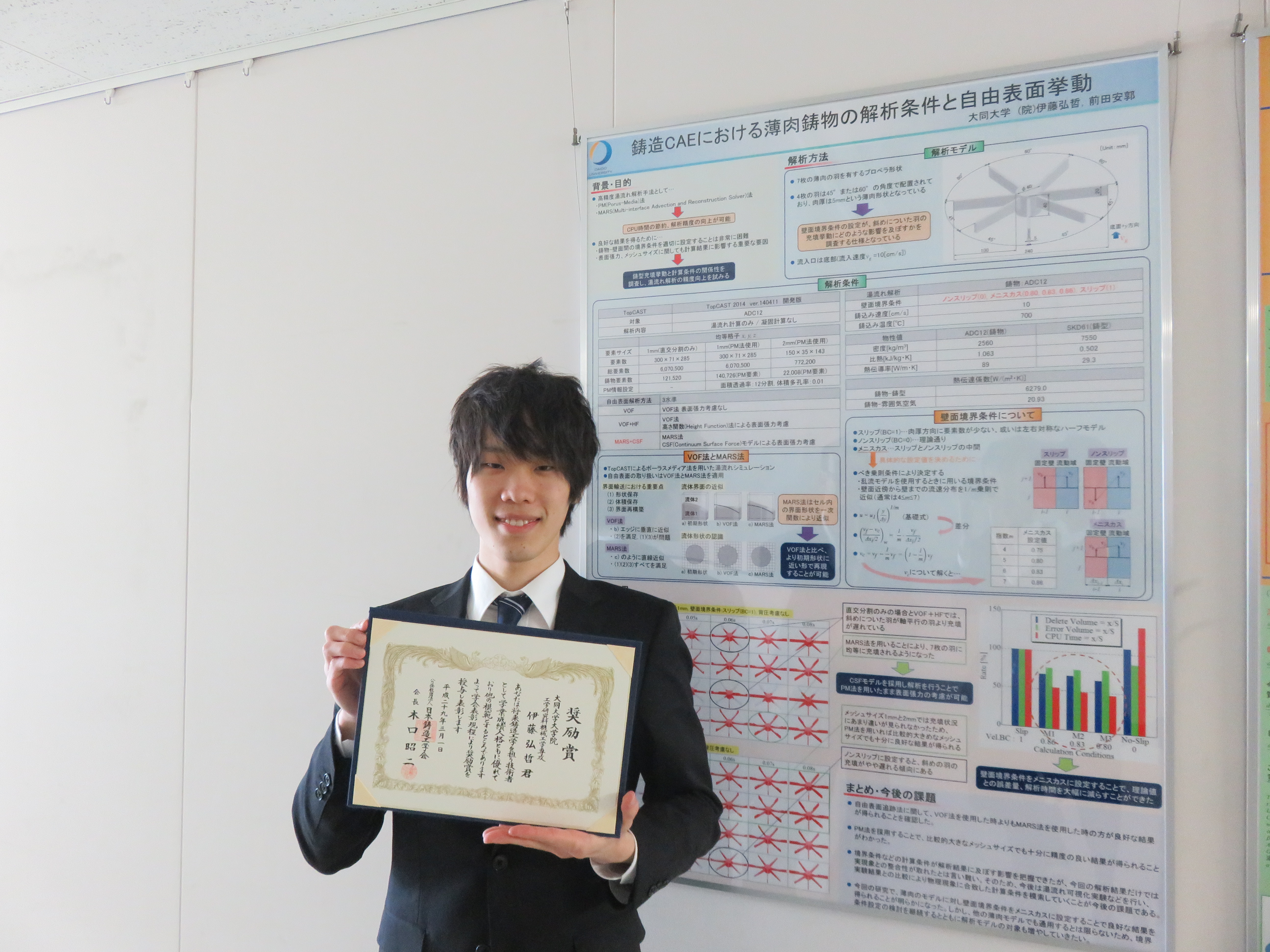 2017年3月24日 / 最終更新日時 : 2017年4月7日 前田安郭 活動 2017年3月17日(金) 平成28年度大同大学学位授与式にて各賞受賞 2017年3月17日(金) 平成28年度大同大学学位授与式にてM2伊藤弘哲さんが、 大同大学学長賞を受賞しました。 平成28年度日本鋳造工学会奨励賞を受賞しました。