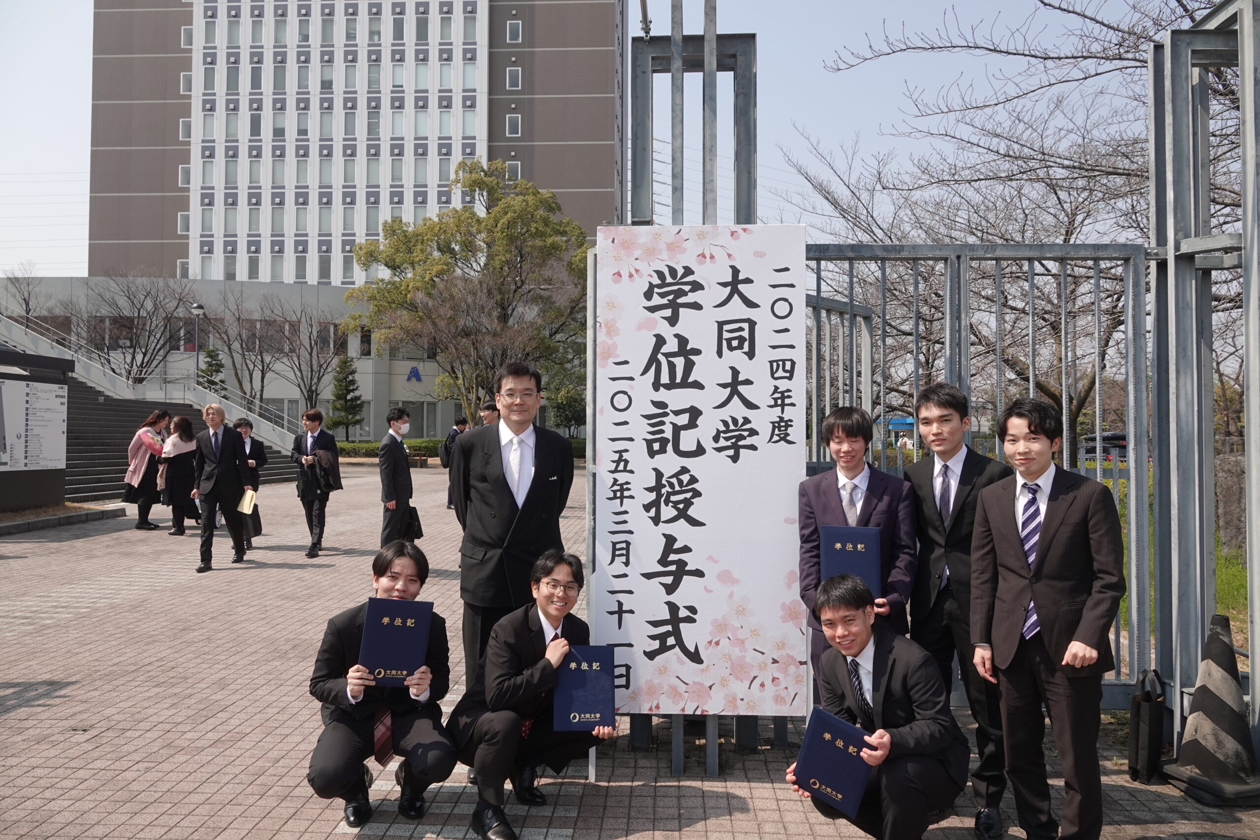 2025年3月21日(金)に、大同大学にて学位記授与式が行われ、本研究室からは大学院生1名と学部生7名が卒業しました。