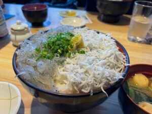 駅には、まるごと駿河湾という飲食店があり、そちらの生しらす・釜揚げしらす丼を食べました。