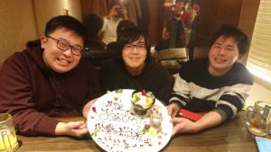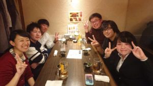 2019年12月9日 / 最終更新日時 : 2019年12月9日 yasuhiro-maeda.com スタッフブログ 2019年12月6日(金) 先輩方と飲み会をしてきました! M2の新井田篤です。 先日、二つ上の先輩方が内定を祝ってくれました! 先輩方に久しぶりに会うことができ、とても嬉しかったです! 伊藤さん、近藤さん、築城さんありがとうございました! PS:今度は自分たちが奢らせていただきます!