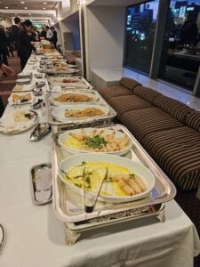大勢の参加者でとてもにぎわっており,提供された料理はとても美味しかったです.